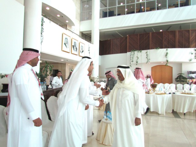 بحضور المدير العام لصندوق التنمية الزراعية المهندس عبدالله بن عبدالرحمن العوين , أقامت ادارة العلاقات العامة والاعلام حفلا بمناسبة عيد الفطر المبارك , وذلك بمقر المركز الرئيسي للصندوق بمدينة الرياض ,حيث تبادل الجميع التهاني , سائلين الله عزوجل أن يعيد هذه المناسبة السعيدة على الجميع باليمن والخير والبركات وقد حضر الاحتفال مساعدو المدير العام , ومدراء الادارات ومسوبو الصندوق.