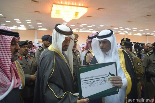 شارك فرع صندوق التنمية الزراعية في منطقة حائل باليوم العالمي للدفاع المدني 2015 تحت شعار تنمية مستدامة بلا مخاطر تحت رعاية صاحب السمو الملكي الامير سعود بن عبدالمحسن أمير منطقة حائل وقدم مدير الفرع المهندس يوسف بن عبدالله المنيفي التقرير السنوي لسمو الامير اثناء زيارته للجناح الخاص بالفرع.