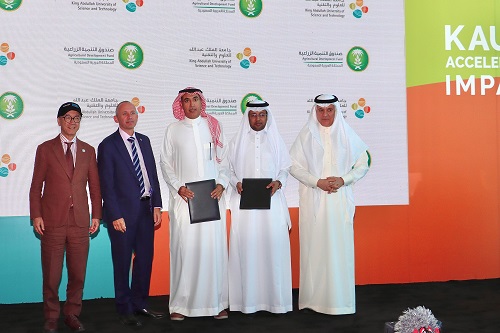 برعاية معالي وزير البيئة والمياه والزراعة رئيس مجلس إدارة صندوق التنمية الزراعية المهندس عبدالرحمن بن عبدالمحسن الفضلي؛ وقّع الصندوق مذكرة تفاهم مع جامعة الملك عبدالله للعلوم والتقنية "كاوست" بمقر الجامعة في ثول، وذلك بهدف التعاون في مجال تطوير ودعم الدراسات والبحوث في القطاع الزراعي، وذلك صباح يوم السبت 8 رجب 1445هـ، الموافق 20 يناير 2024م. حيث وقّع المذكرة الرئيس التنفيذي لصندوق التنمية الزراعية الأستاذ منير بن فهد السهلي، ونائب رئيس الجامعة لمعهد التحول الوطني الدكتور أيان كامبل.