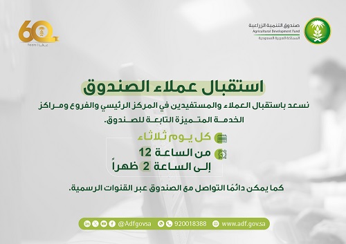 حيث حدد الصندوق أوقات الاستقبال من الساعة 12 وحتى الساعة 2 ظهرًا يوم الثلاثاء، وذلك للراغبين بلقاء مسؤولي الصندوق سواء في المركز الرئيس، أو الفروع أو مراكز الخدمة المتميزة.