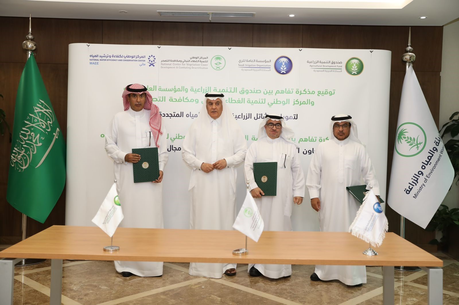 وتأتي هذه المذكرة لتعزيز ودعم التعاون والمشاركة الفعالة بين القطاعات الحكومية والخاصة، وفي إطار دور صندوق التنمية الزراعية في تعزيز الأمن الغذائي مع الحفاظ على الموارد الطبيعية وتطوير المناطق الريفية، بالتوافق مع الاستراتيجية الوطنية للزراعة لعام 2030م، وانطلاقًا من مسؤولية المركز الوطني لتنمية الغطاء النباتي ومكافحة التصحر في تنمية الغطاء النباتي الطبيعي وزيادة مساحته وحماية تنوعه، والاستفادة القصوى من المياه المجددة عن طريق المؤسسة العامة للري، وذلك للمحافظة على المياه الجوفية، فيما يحقق التعاون الفعال بين الأطراف الثلاثة بما يخص مبادرة السعودية الخضراء.