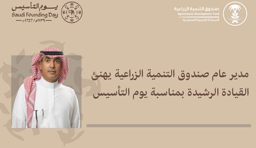 رفع سعادة مدير عام صندوق التنمية الزراعية منير بن فهد السهلي أسمى آيات التهنئة والتبريكات لمقام خادم الحرمين الشريفين الملك سلمان بن عبدالعزيز آل سعود، وإلى سمو ولي عهده الأمين رئيس مجلس الوزراء صاحب السمو الملكي الأمير محمد بن سلمان بن عبدالعزيز ــ حفظهما الله ــ بمناسبة ذكرى يوم التأسيس الذي يعد تاريخًا عظيمًا من أيام بلادنا، فهو اليوم الذي تأسست فيه الدولة السعودية الأولى على يد الإمام محمد بن سعود، رحمه الله، وانتشر الأمن والاستقرار وازدهرت مظاهر الثقافة والعلوم.